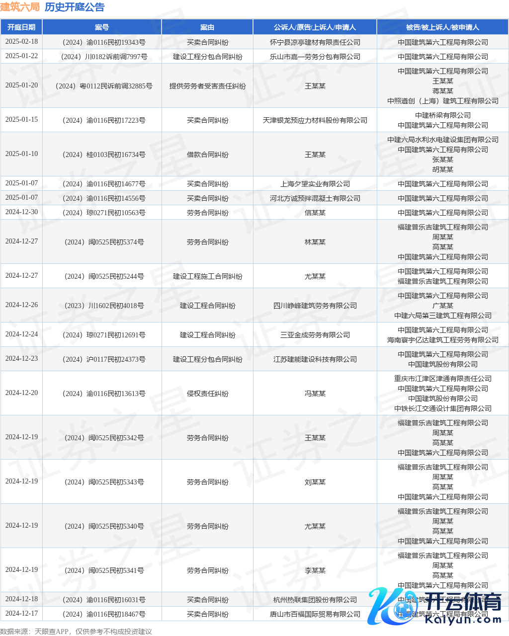 本站音讯,凭据天眼查APP泄漏,近日公布了一则中国建筑第六工程局有限公司算作被告/被上诉东谈主的开庭公告,弘扬实质如下: