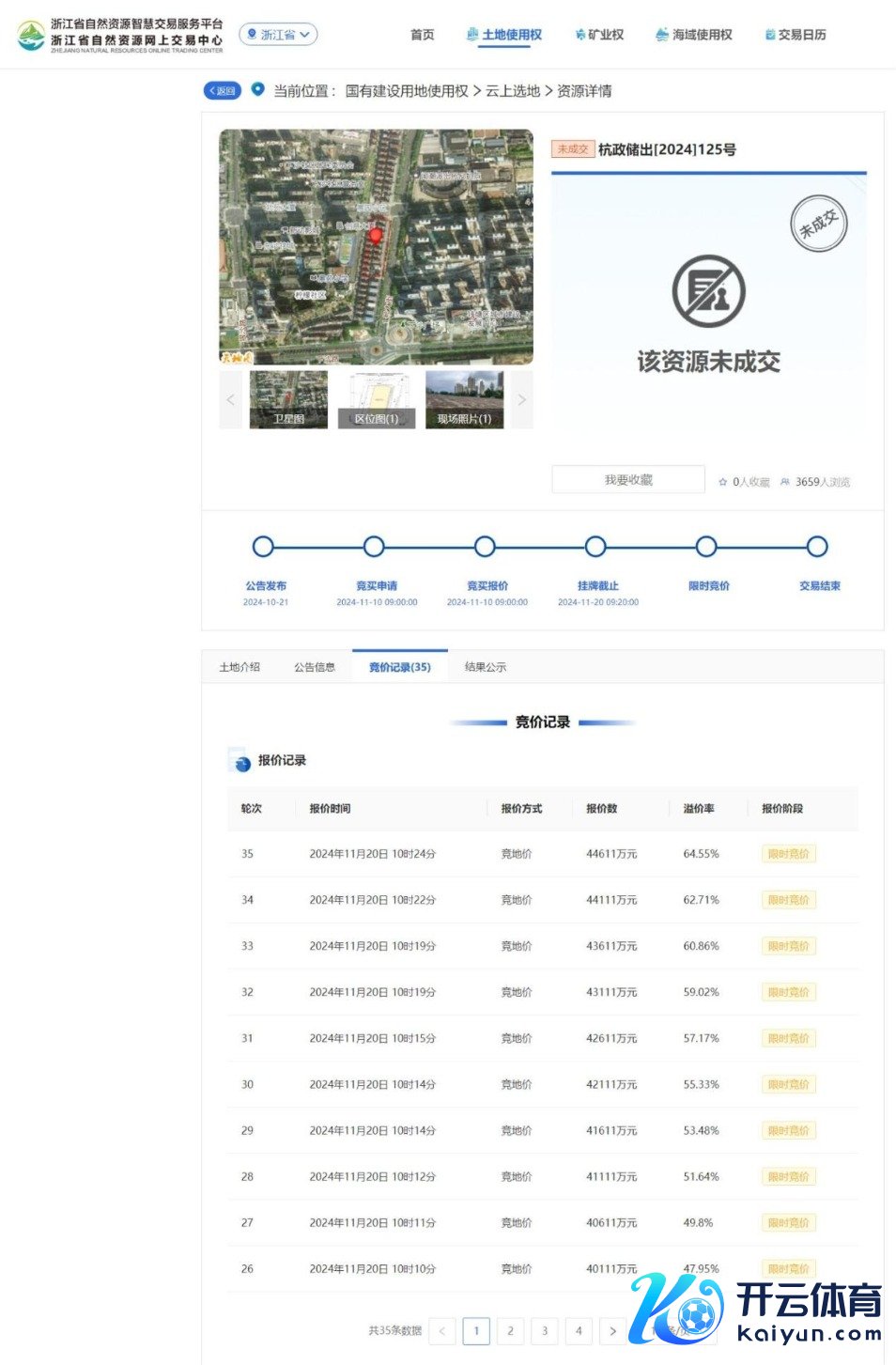 在浙江省当然资源网上交游中心/浙江省当然资源理智交游服务平台上开云体育(中国)官方网站,曾历经35轮叫价、最终溢价64.55%以4.46亿元的最高价抢下的杭政储出【2024】125号地块,自满莫得成交。