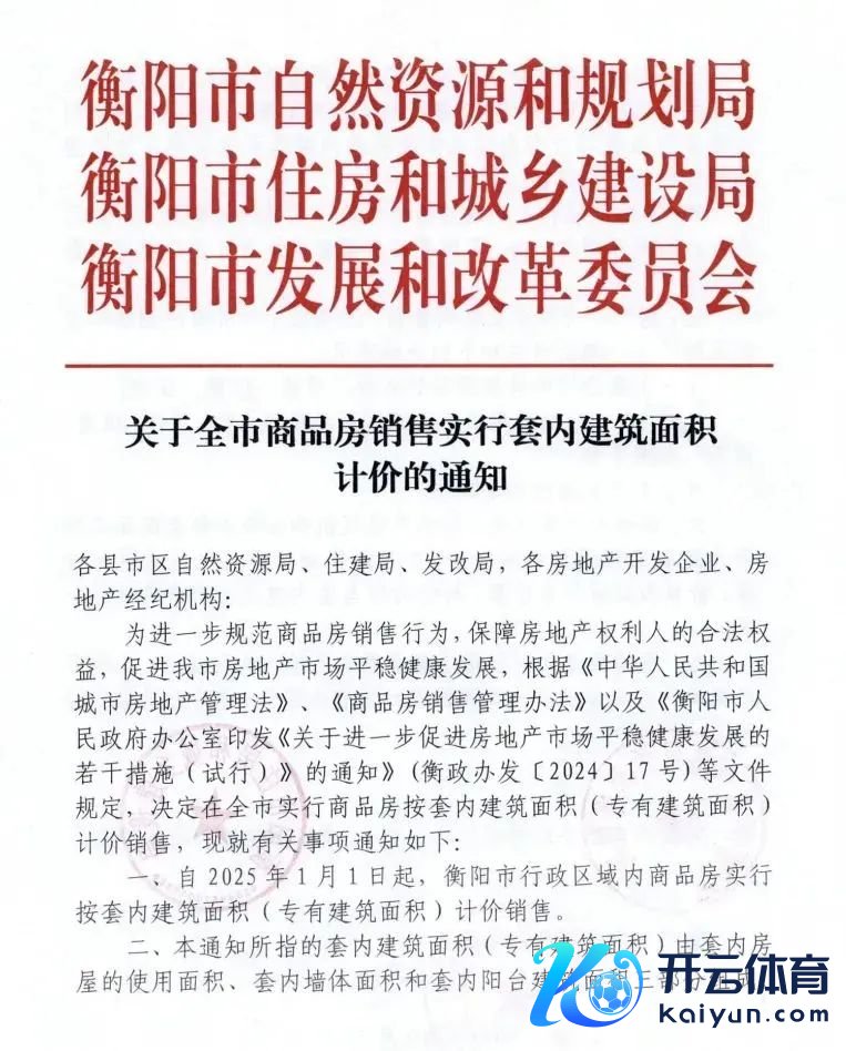 12月12日,湖南省衡阳市当然资源和权术局、衡阳市住房和城乡开采局、衡阳市发展和改良委员会都集发布《对于全市商品房销售引申套内建筑面积计价的见知》,明确自2025年1月1日起,衡阳市商品房销售引申套内建筑面积计价。