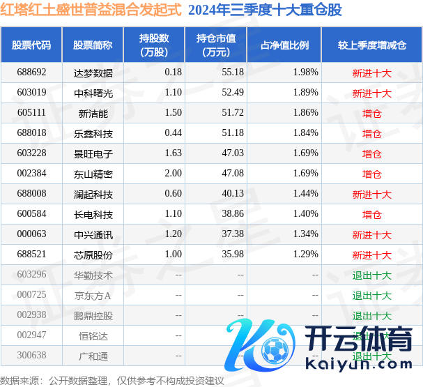 红塔红土盛世普益搀和发起式为搀和型-纯真基金,字据最新一期基金季报表现,该基金金钱成就:股票占净值比25.46%,债券占净值比35.58%,现款占净值比10.82%。基金十大重仓股如下: