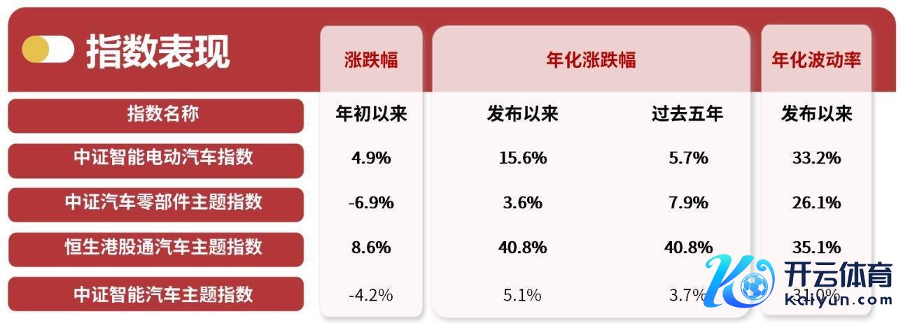 据WIND数据,汽车产业干系指数计谋包含四只指数,循序为中证智能电动汽车指数、中证汽车零部件主题指数、恒生港股通汽车主题指数、中证智能汽车主题指数。不雅察指数异同,相反在于汽车产业链中所属阵势不同逐个中证智能电动汽车指数袒护“智能电车全产业链”阵势,样本触及能源系统、感知系统、决策系统、引申系统、通信系统、整车分娩及充电桩等。中证汽车零部件主题指数袒护“零部件”阵势,涵盖汽车系统部件、表里饰、汽车电子、轮胎等界限。恒生港股通汽车主题指数袒护港股通内汽车全产业链观念,权重主要聚积在整车厂,尤其是新势力整车厂。中证智能汽车主题指数袒护“智能汽车软硬件及惩办决议”阵势,中式智能汽车硬件软件提供商、整车厂商、互联网厂商等。